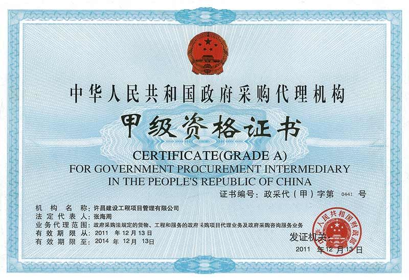 政府采購甲級資質(zhì)證書