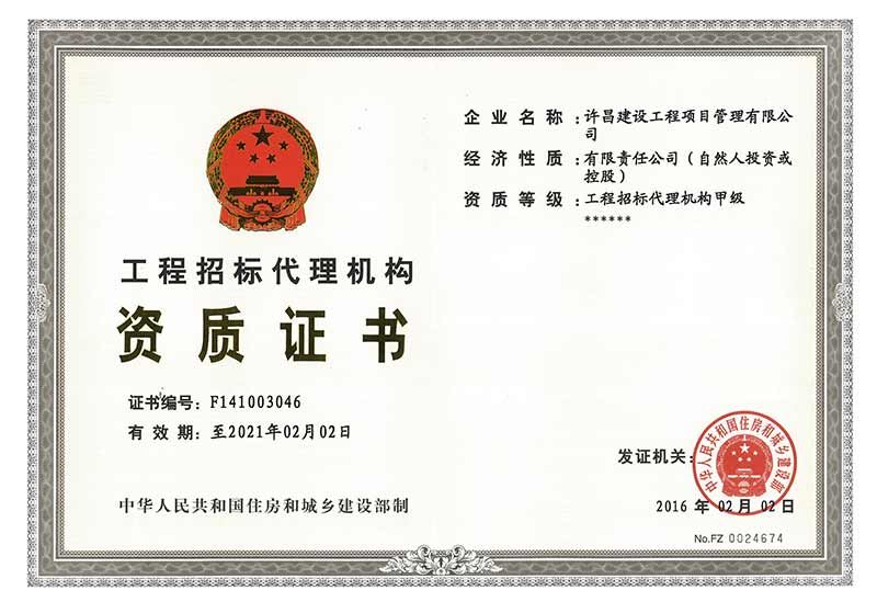 招標(biāo)代理甲級證書